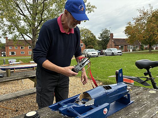 Mike was back with the latest modifications to Bluebird which flew across the lake before the speed controller succumbed to the damp and subsequently started to melt.